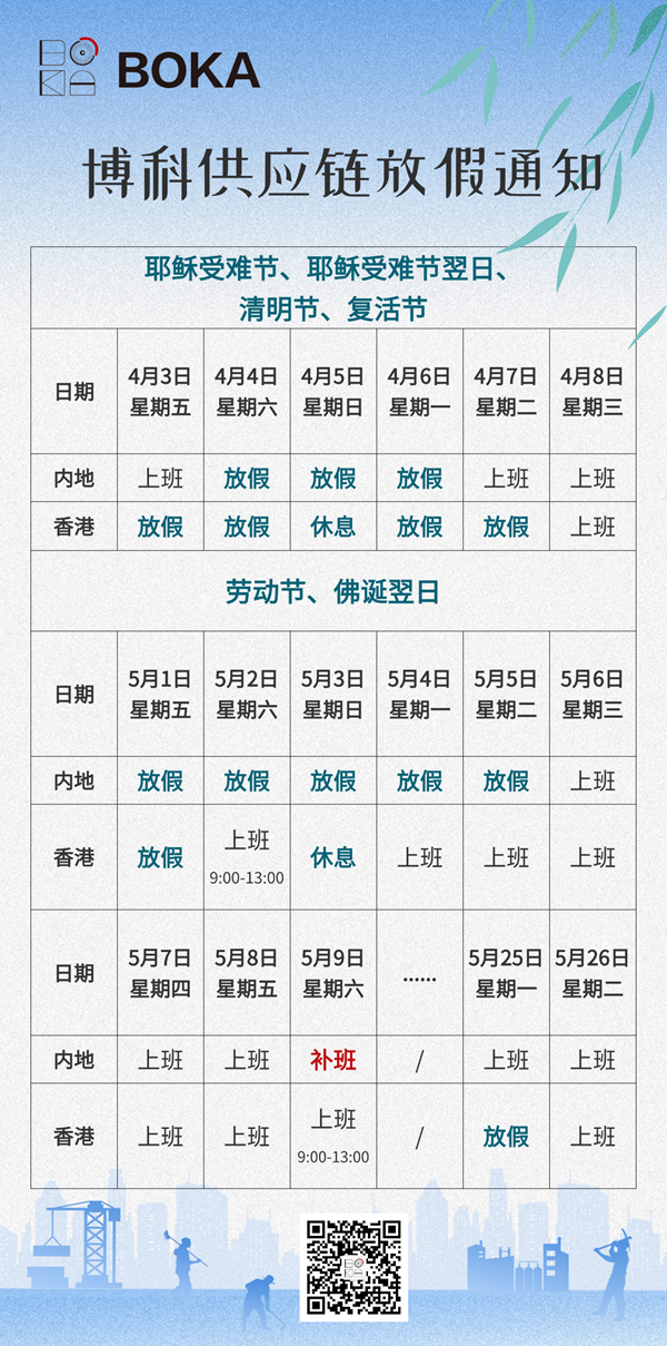 根據國家法定節假日規定,結合公司實際經營情況,現對2026年耶穌受難節、耶穌受難節翌日、清明節、復活節、勞動節、佛誕翌日放假具體安排如下: